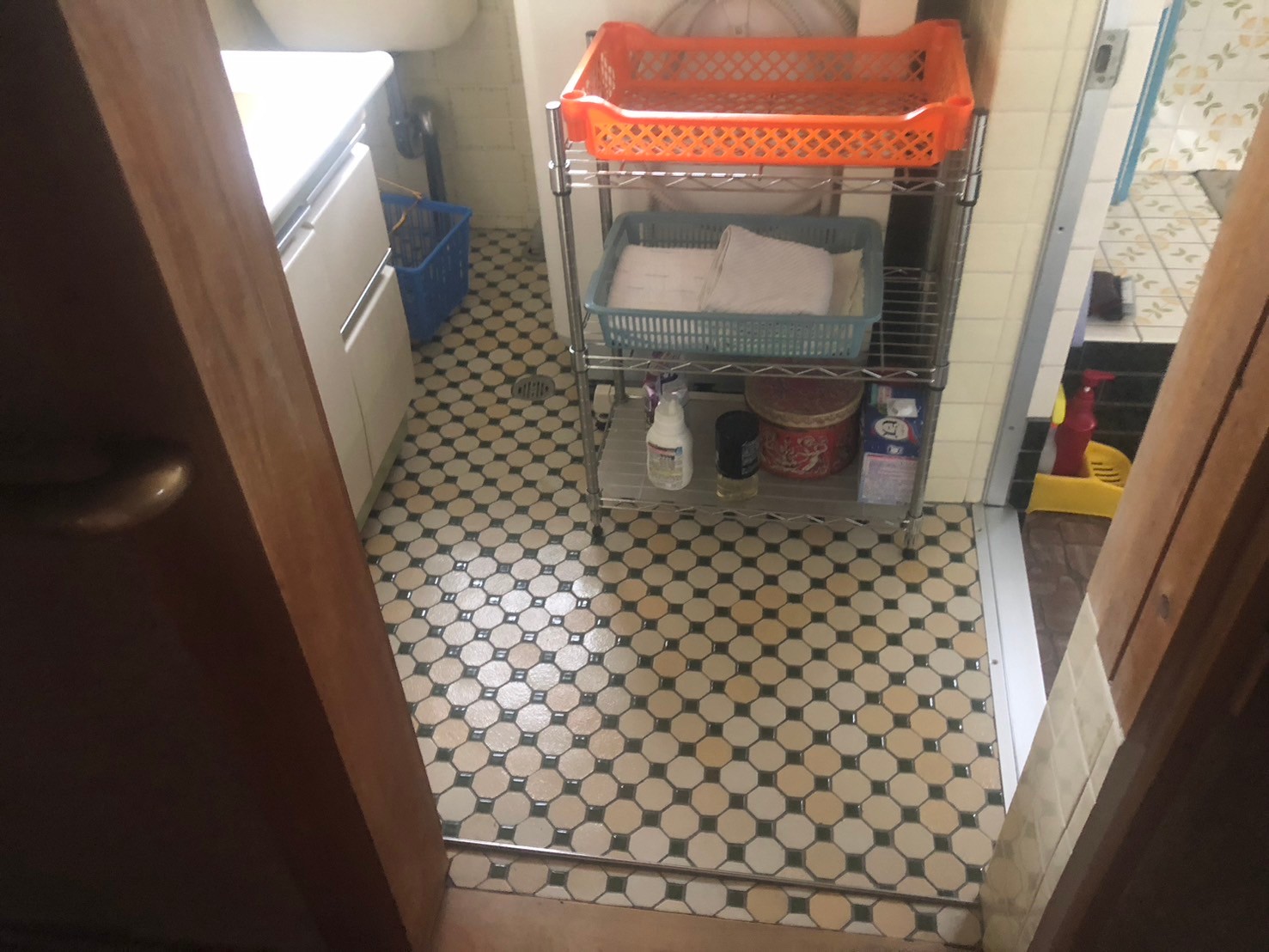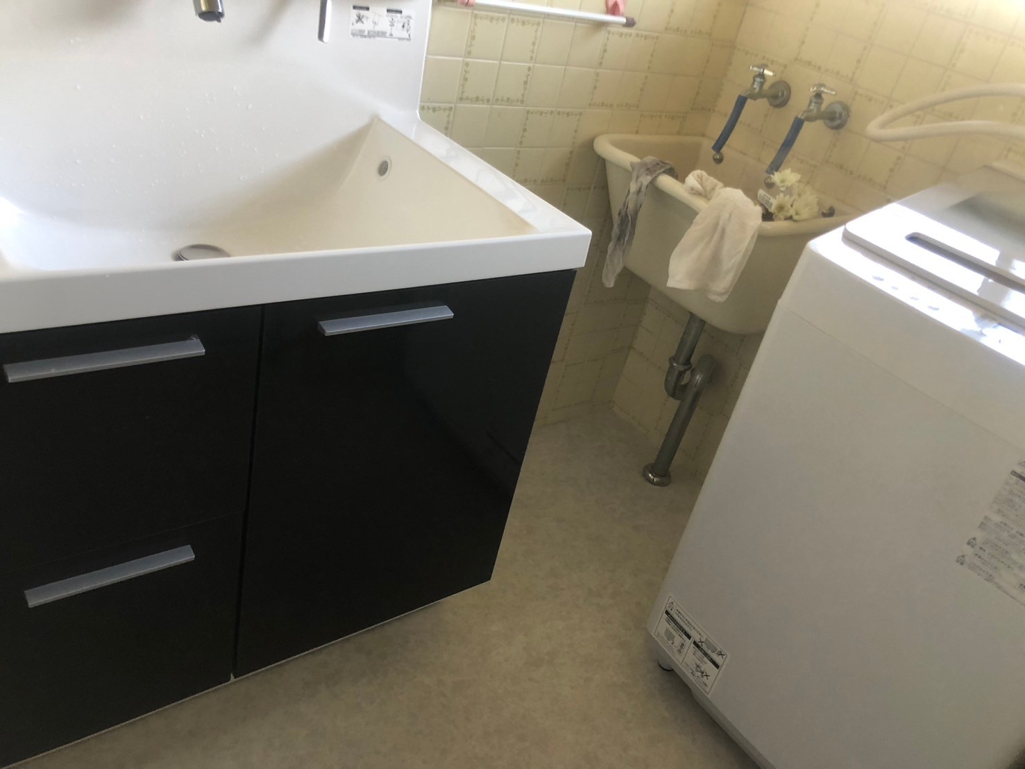 洗面台と脱衣所の床も同時に取替させていただきました。